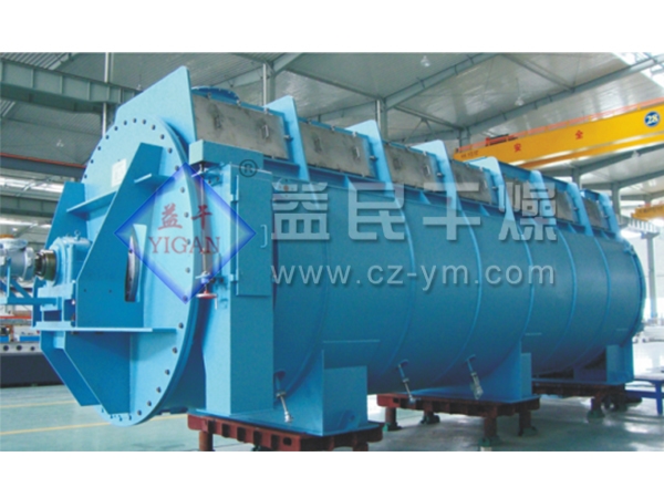 圆盘干燥机作为一种污泥间接加热干化设备在几十年前就已经应用于化学工业,食品工业以及饲料工业。现在已经发展为相当成熟的干化工艺,在国际市场上占有率也非常高。污泥焚烧的共同特点是以回收能源为目的。污泥的热值低,一般需要添加辅助燃料,所以应该设计辅助燃料少的流程,而流化床工艺就是其中之一。圆盘干燥机主体由一个圆筒形的外壳和一组中心贯穿的圆盘组成。圆盘组是中空的,热介质从这里流过,把热量通过圆盘间接传输给污泥。污泥在圆盘与外壳之间通过,接受圆盘传递的热,蒸发水份,污泥水份蒸发形成的水蒸气聚集在圆盘上方的穹顶里,被少量的通风带出干化机。圆盘干燥机的圆盘有两个作用:一是它给污泥提供足够大的换热面积,二是它缓慢转动,它上面的小推进器推动污泥向指定的方向流动并起到很好的搅拌作用。圆盘干化机利用每个圆盘的双面传热,可以在小空间里提供很大的换热面积,这使得圆盘干燥机体型紧凑。圆盘的转动变频可调,转速约为5r/min,因此磨损很小。圆盘盘面与轴是垂直的,所以它本身的转动不影响污泥的流向,圆盘干燥机的圆盘边缘有一些小桨叶,这些小桨叶有一定的倾角,既帮助污泥定向流动,双起到搅拌的作用。外壳是不动的,它容纳污泥和污泥蒸发产生的水蒸汽。外壳内壁有固定的刮刀。刮刀很长,伸到圆盘之间的空隙,防止有大块污泥固结在盘片上。与圆盘上的桨叶类似,固定刮刀也起到搅拌的作用。