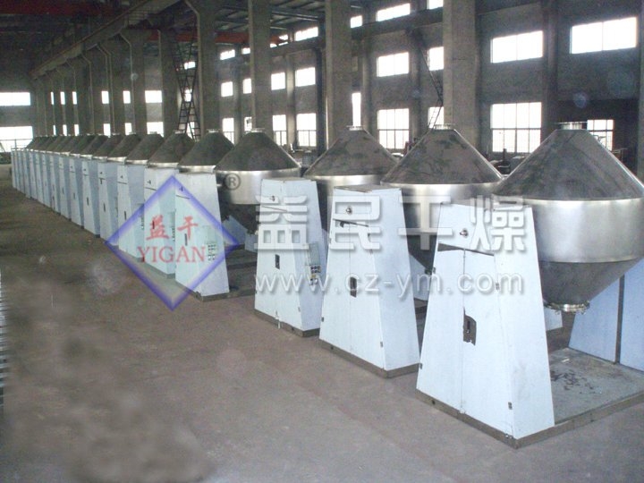 双锥回转真空干燥机是集混合—干燥于一体的新型干燥机。将冷凝器、真空泵与干燥机配套,组成真空干燥装置。(如不需回收溶剂,冷凝器可不用)本机设计先进,内部结构简单,清洗容易,物料能全部排出, 操作简便,能降低劳动强度改善工作环境。同时因容器本身回转时物料亦转…
