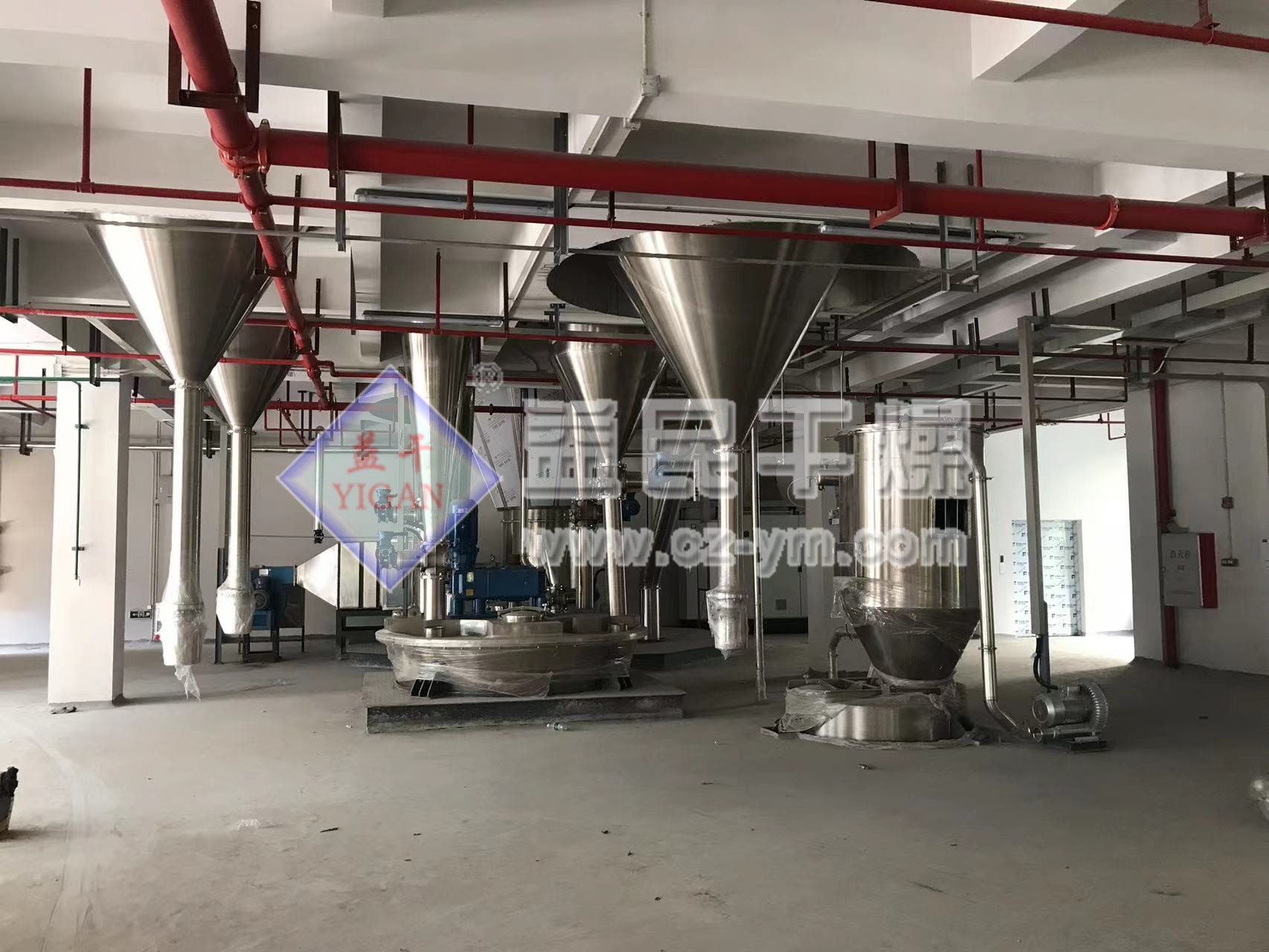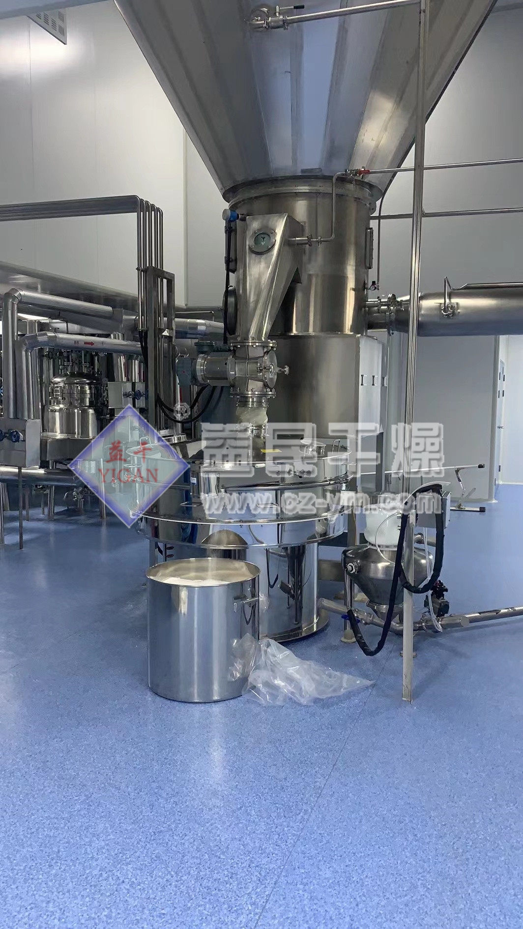压力式喷雾干燥造粒机是采用压力式雾化器借助隔膜泵的压力将溶液或浆状的物料雾化成细微液滴,使表面积显著增大.经与热风进行充分热交换得以快速干燥(十几秒至几十秒),从而得到粉体或细小颗粒产品的设备。