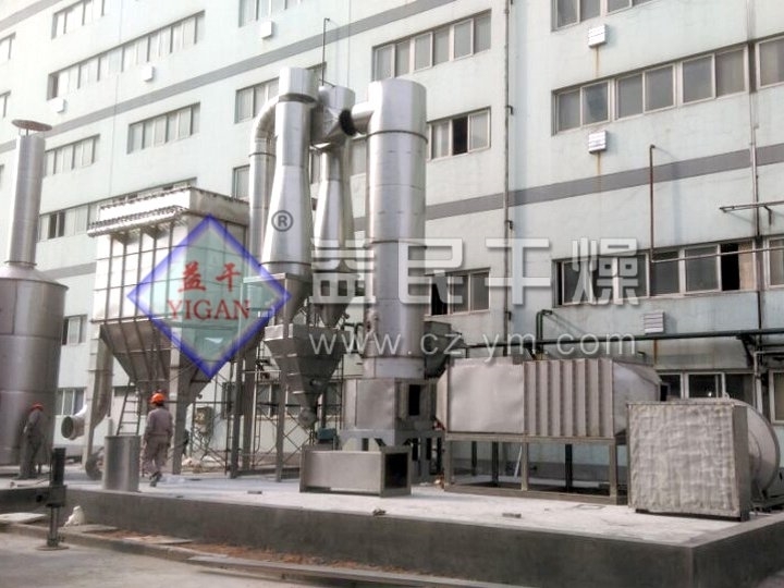 碱式碳酸锌闪蒸干燥机是由热空气切线进入干燥器底部,在搅拌器带动下形成强有力的旋转风场。物料由螺旋加料器进入干燥器内,在高速旋转搅拌桨的强烈作用下,物料受撞击、磨擦及剪切力的作用下得到分散,块状物料迅速粉碎,与热空气充分接触、受热、干燥。干燥好的物料被气流携带进入收尘系统进行收集处理,符合环保要求含尘量≤50mg/m3的尾气由引风机排空,完成整个干燥过程。